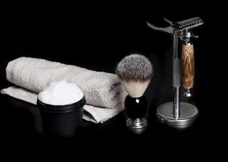 Set of accessories for classic men's wet shaving.