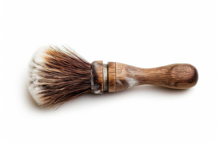 A closeup image of a used shaveing brush