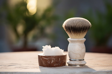 Shaving brush on a gray stone table. Shallow depth of field