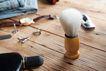 Shaving brush on the table