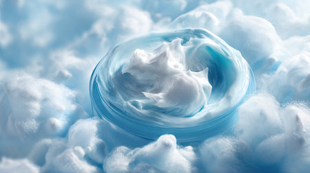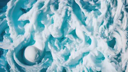 Blue foam texture abstract art background. Closeup of layered mousse effect surface.