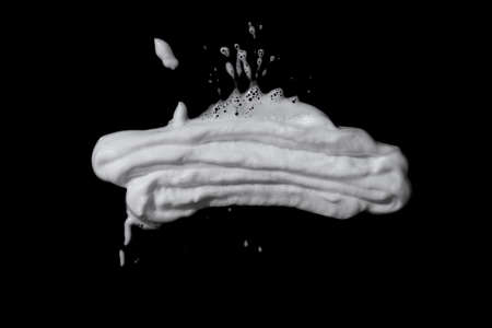 Top view, liquid white foam from soap or shampoo or shower gel. Abstract bubbles. isolated on a black background