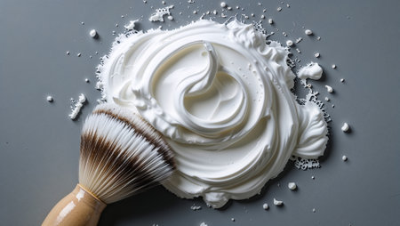 Shaving brush applying luxurious white shaving cream on a gray background, creating a perfect swirl. Ai generated image