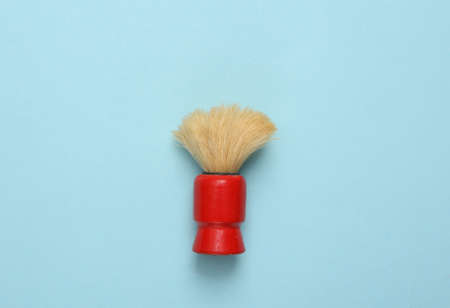 Shaving brush on a blue background. top view