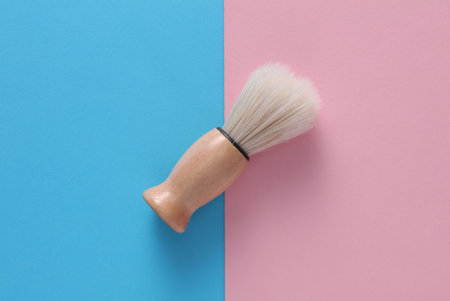 Shaving brush on pink blue background with reflection