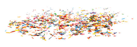 Shavings from multicolored pencils on white background, Education, Back to school Concept.