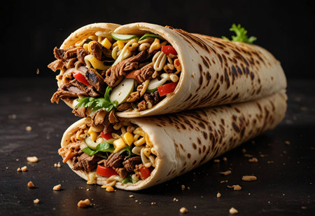 Freshly made wraps filled with delicious ingredients served on a dark background