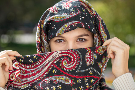 Mysterious beautiful middle eastern ethnicity woman wearing a hijab