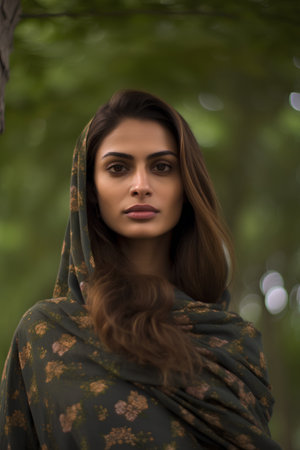 Portrait of a beautiful indian woman with traditional clothes, close up