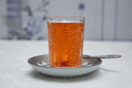 tea in a glass cup on the table