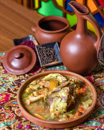 Surpa Soup from Boiled beef, potatoes and onions according to an oriental recipe. Eastern cuisine, national dish