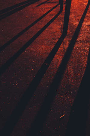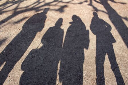 Shadows of the people on the street. Walking people's shadows at sunset. Mystery concept.