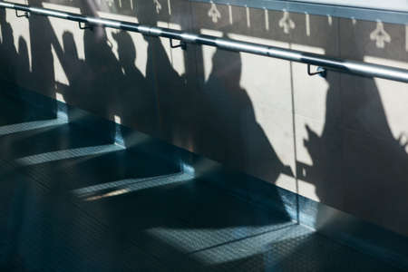 Abstract shadows of people walking on a sidewalk during sunset in Brisbane, Australia