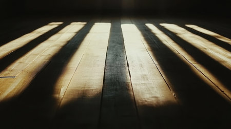 A serene image featuring soft shadows cast on dark wooden planks, creating a harmonious interplay of light and texture. Ideal for minimalist designs.