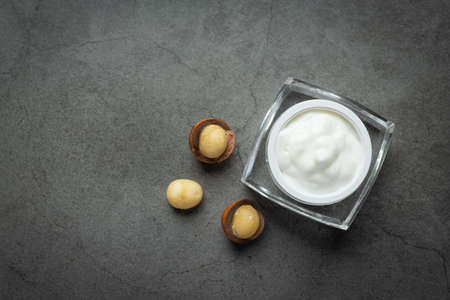 Concept of skin care cosmetics, Shea butter, close up