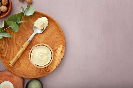 Concept of skin care cosmetics, Shea butter, space for text