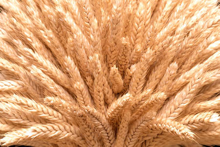 spikelets of ripe wheat close up, background