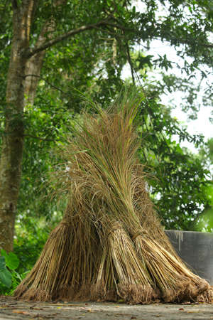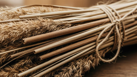 pile of fresh reeds ready for basket crafting, created with generative ai