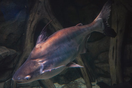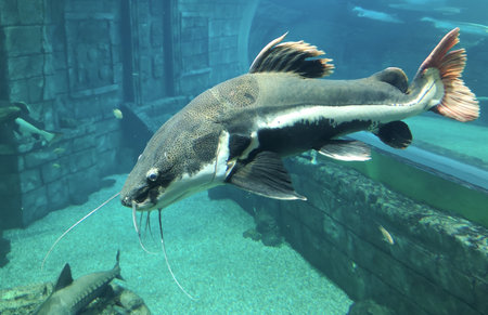 Common sheatfish swimming fish tank underwater aquarium / blue sheatfish