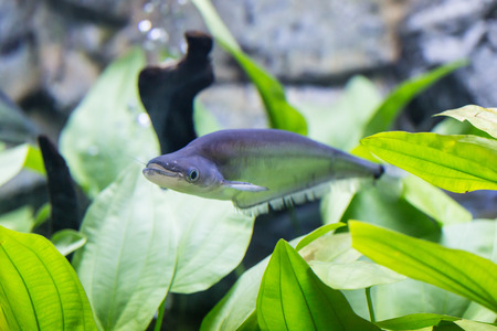 amazon sheatfish actocephalus nemioliopterus in aquarium with stone