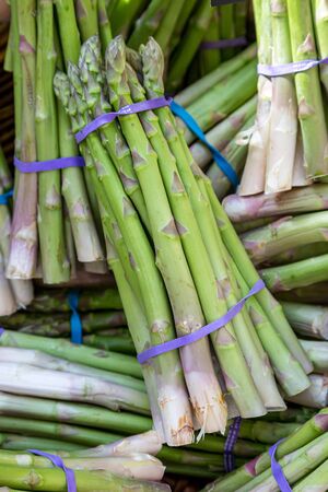 Sheafs of fresh asparagus at the market