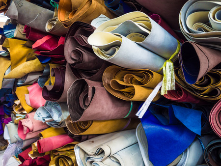 Raw Leather in craft shop, Natural cow leather.