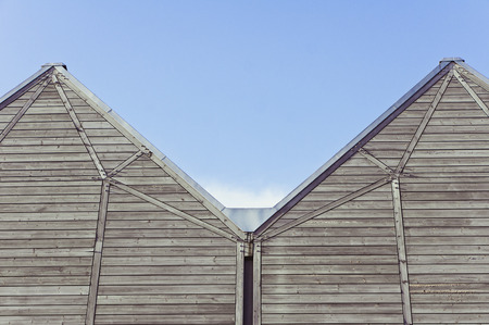 Gable shed roof and blue sky as copy space, abstract composition