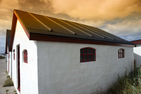 Several fishing huts on Gotland in Sweden. 6 small cottages next to each other.