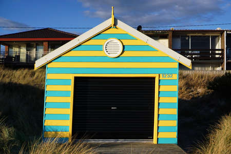 HOBART, AUSTRALIA - September 9th, 2019: the typical colorful beach huts of Conningham Beach in Tasmania