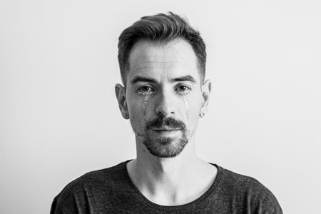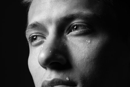 Portrait of emotional man shedding tears