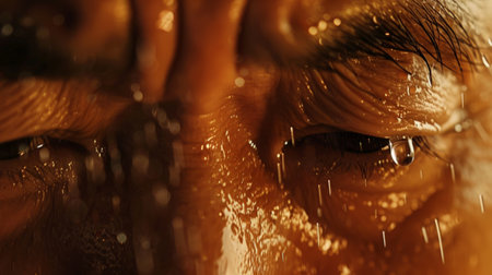 Person with sweat visible on the forehead and dripping down the face generative ai