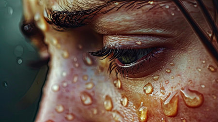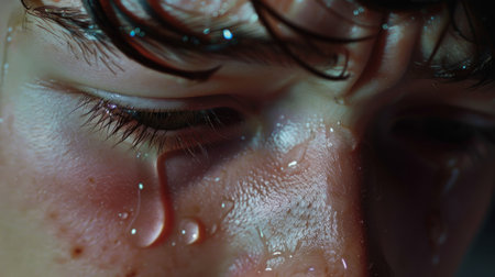 Closeup of a face with tears rolling down the cheeks generative ai