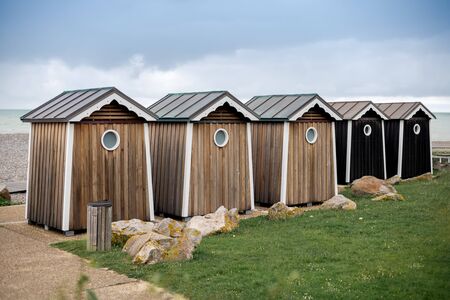 A Collection of Wooden Beach Huts at the Seaside.