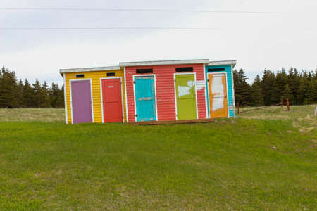 Colourful outhouses along a hike in Cows Head Newfoundland. Interesting sight seeing.