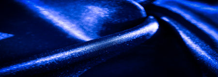 Blur of rich blue fabric with soft folds and a silky finish. The light highlights the smooth texture and enhances the fabric's luxurious, flowing appearance.
