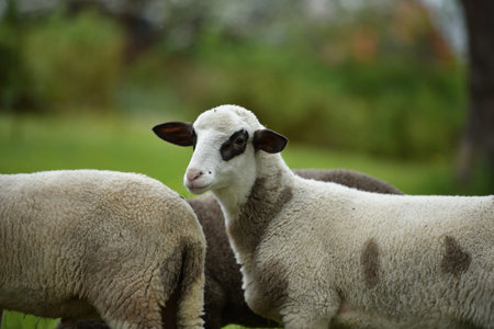 Sheep in a meadow in the countryside, close-up