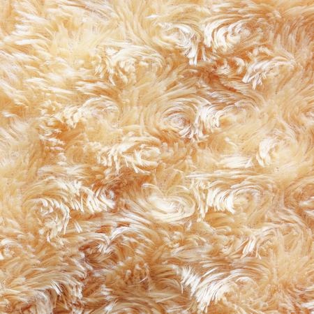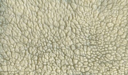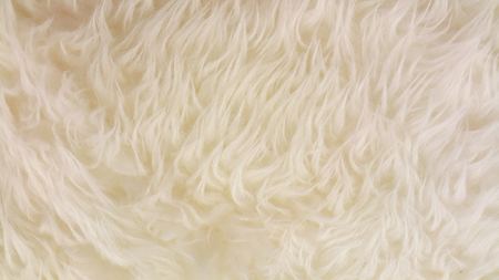 Background picture of a soft fur white carpet. wool sheep fleece closeup texture background,Fake color beige fur fabric. top view. 2019