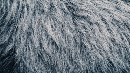 Close-up of soft grey fur texture with fluffy patterns and natural hair details for a cozy background