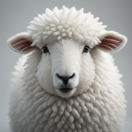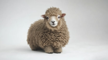 This striking image captures a realistic sheep with a soft, fluffy coat against a blank background, emphasizing its natural beauty and calm demeanor, perfect for various creative projects.