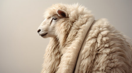 This striking image captures a realistic sheep with a soft, fluffy coat against a blank background, emphasizing its natural beauty and calm demeanor, perfect for various creative projects.