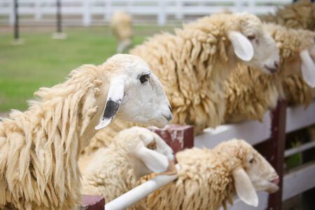 A image of Sheep in a farm. Sheep in a pen. Flock of sheep fur Generative AI