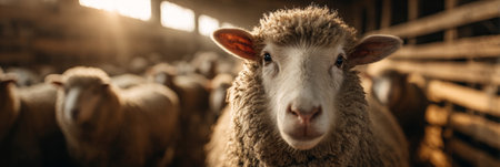 Bustling Sheep barn crowd. Animal group. Generate Ai