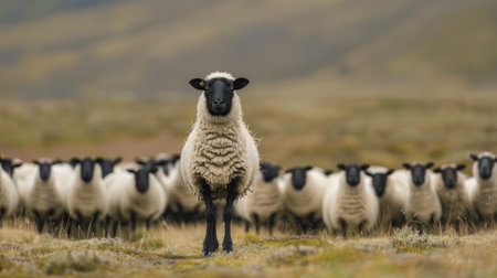 An Exceptional Black Sheep Takes the Lead in a Group. Concept Black Sheep, Leadership, Exceptional, Group Dynamics, Unconventional