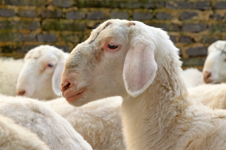 white sheep in stables show up it head to wait for people feed them with light ray