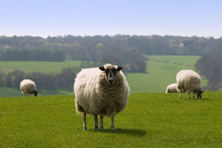 Domestic Sheep Ovis aries standing in a field in Gloucestershire, England