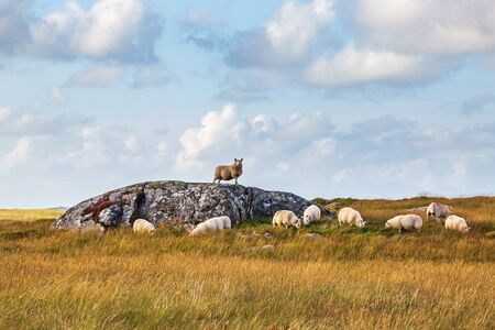 A herd of sheep on the Hebridean Island of North Uist
