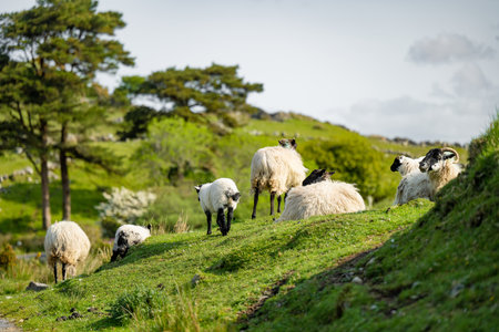 Cute blackface sheep lambs in a field in County Connemara - Ireland
