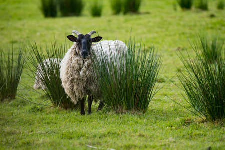 Cute blackface sheep lambs in a field in County Donegal - Ireland