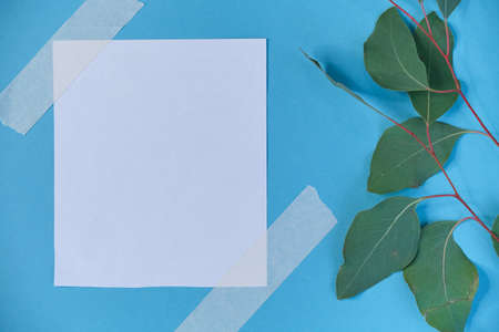 Mock up white empty paper card on the green leaves. Layout for design