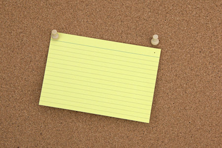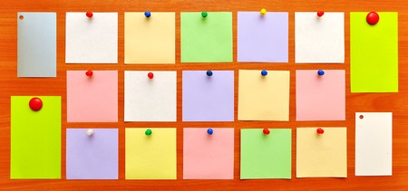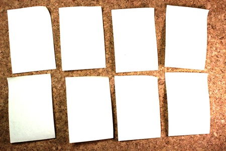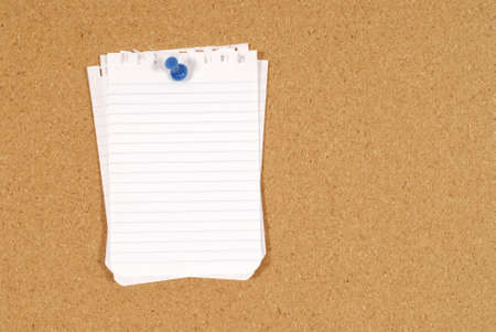 Cork notice or bulletin board with several sheets of untidy torn blank notepaper. Space for copy.